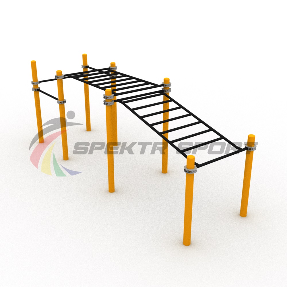 Комплекс состоит из трёх турников и двухсекционного рукохода — одна секция в подъём, вторая горизонтальная. По рукоходу можно ходить в обоих направлениях. Начинающим можно начать со спуска по наклонной секции рукохода. Так мышцы привыкнут к нагрузкам, тело запомнит движения. Постепенно можно перейти на горизонтальный рукоход, а потом добавить секцию в подъём. Три турника устанавливаются на различной высоте, чтобы каждый ребёнок нашёл подходящую для себя высоту.